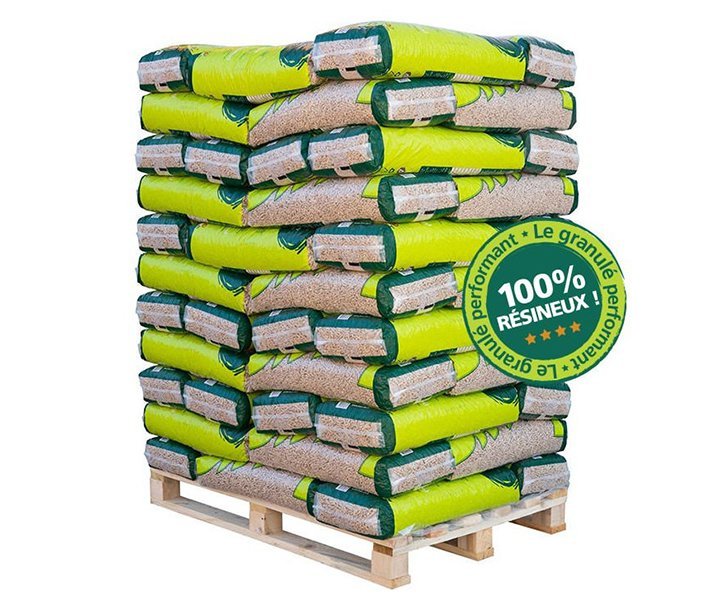 1 palette de granulés de bois – 7,65€ par 15 kg – 508kg ou 28 sacs/palette