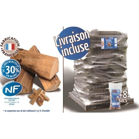 Bois densifié – Qualité Premium – Palette de 80 cartons de 6 bûches