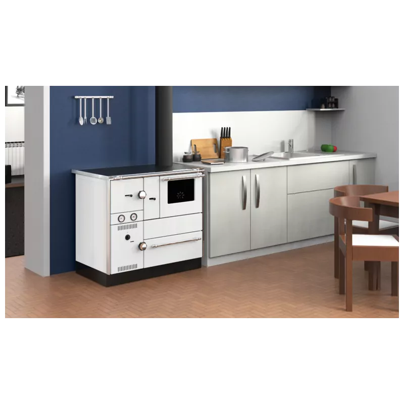 Matériaux de qualitéLa cuisinière Alfa 85 G Eco est conçue avec des matériaux de première qualité. Elle comprend des finitions méticuleuses, des barres pour suspendre vos torchons, des poignées intégrées avec élégance et un revêtement en acier disponible en plusieurs coloris pour s’intégrer parfaitement dans tous les intérieurs. L’acier présente aussi l’avantage d’assurer une montée rapide en température, garantissant une chaleur uniforme dans votre intérieur.