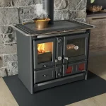 La Termorosa XXL est conçue pour durer. Elle combine un corps en acier émaillé et des éléments structurels en fonte : portes, plaque supérieure et châssis. Cette conception assure une excellente résistance thermique, avec une accumulation efficace de la chaleur. Son tiroir à bois intégré renforce la praticité au quotidien, et ses lignes sobres lui permettent de s’intégrer dans tous types d’intérieurs.