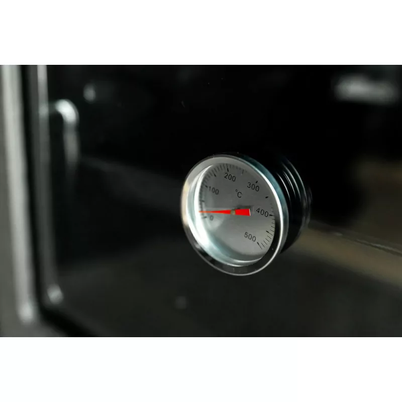 La Thermo Magnum est équipée d’une plaque de cuisson en fonte haute température, idéale pour griller, saisir ou mijoter. Son four en fonte de 42,5 litres offre une montée rapide en température et une cuisson homogène. Un thermomètre intégré sur la porte et une molette de réglage assurent un contrôle précis de la chaleur. Quatre modes sont disponibles :