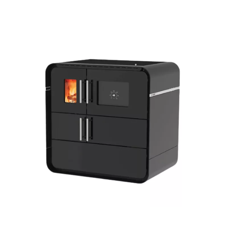 La plaque de cuisson en vitro-céramique et les quatre permettent une cuisson réussie de tous vos plats. Le foyer, habillé de vermiculite, favorise une combustion plus efficace et une meilleure diffusion de la chaleur dans votre intérieur. De plus, un mécanisme de sécurité pour le verrouillage vous assure une fermeture facile et sûre des portes du four et du foyer.