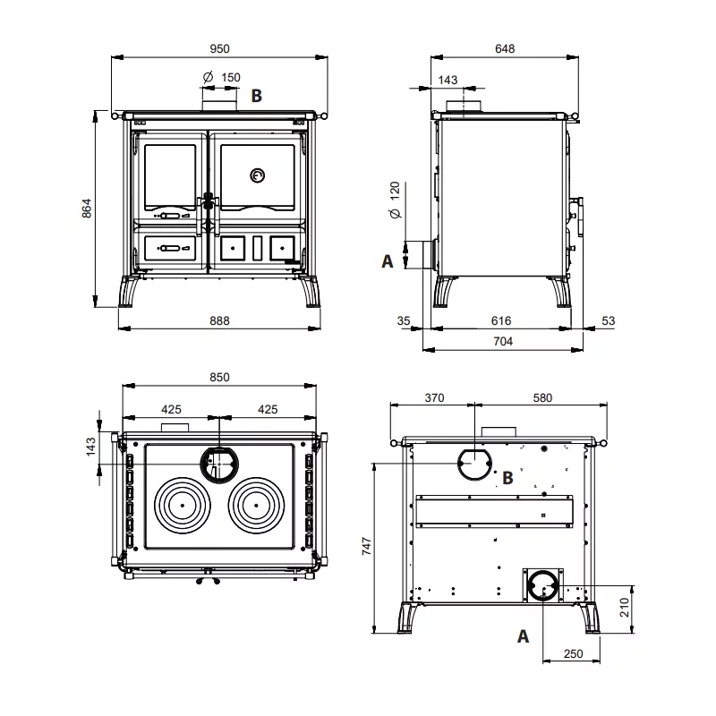 Avec ses pieds surélevés de 12 cm, la cuisinière à bois Gardenia 5.0 est conçue pour rendre le nettoyage de votre sol encore plus simple, tout en facilitant l’utilisation quotidienne du produit. Le foyer, doté de parois réfractaires et d’un fond en fonte, garantit une excellente conservation et répartition de la chaleur, optimisant ainsi les performances de cuisson et de chauffage.