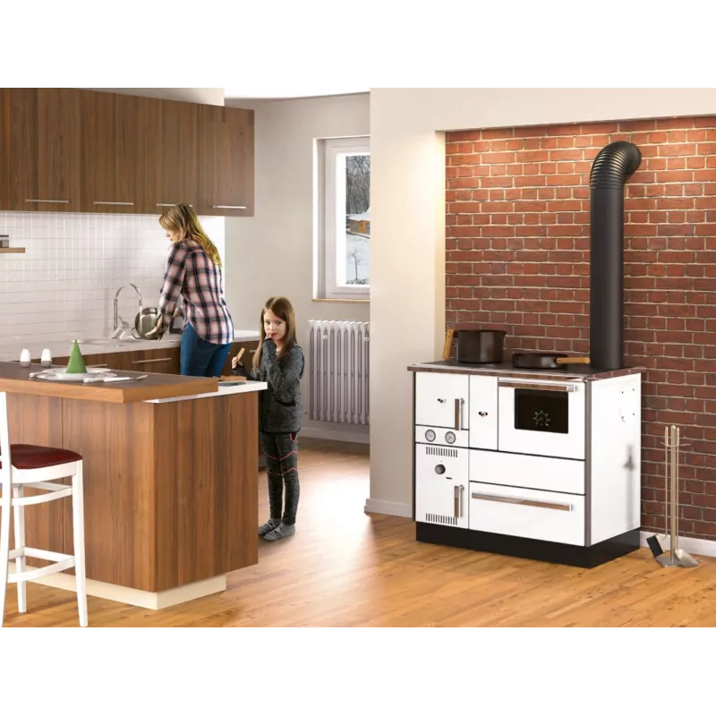 Fabriquée avec des matériaux de haute qualité, l’Inox 75 combine des plaques en acier inoxydable et un émail résistant aux hautes températures, garantissant une durabilité exceptionnelle. Les plaques en argile réfractaire dans le foyer emmagasinent la chaleur et améliorent la température ambiante, offrant un confort thermique accru. Ses finitions modernes et sa conception soignée en font un choix idéal pour les cuisines élégantes.