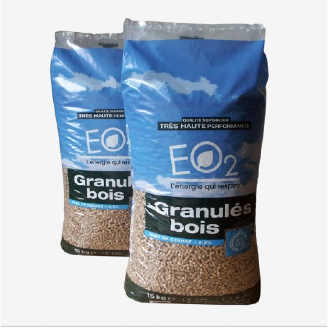 En partenariat avec EO2, nous vous proposons des granulés de bois de haute qualité certifiés DINplus. Ces granulés sont connus pour leur fiabilité et leur puissance calorifique, offrant une source de chaleur exceptionnelle pour votre foyer.