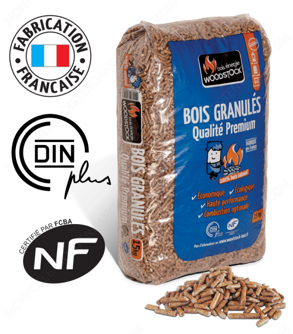 Ces pellets sont de fabrication française et ne comportent aucun élément ou substance chimique. Le granulé fait 20 mm de long pour 6 mm de diamètre, des mensurations plutôt correctes. En effet, un pellet mesure normalement entre 15 et 20 mm avec un diamètre maximal de 8 mm. Ces granulés WOODSTOCK qualité Premium sont livrés par palette de 78 sacs. On compte 15 kg pour la masse du sac. Ce produit convient à tous les appareils de chauffage au bois destinés aux pellets (insert, poêle ou chaudière).
